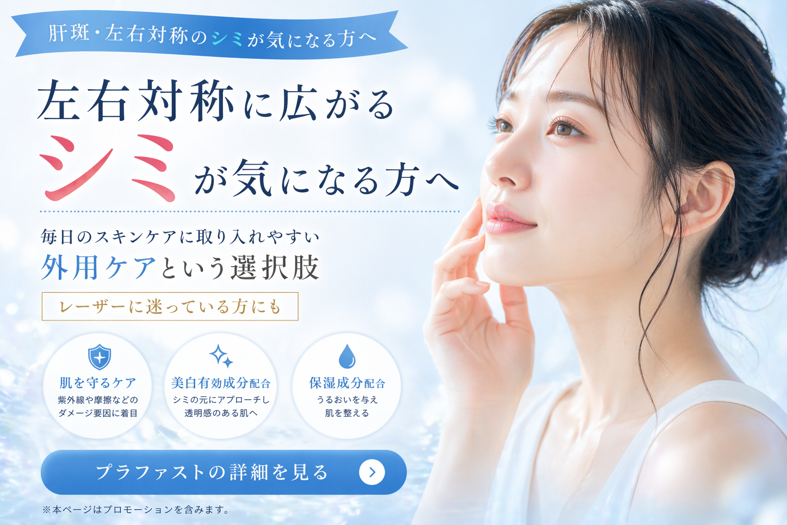 プラファストは、保湿成分や美容成分を配合した、肝斑シミ用の美白ジェルクリームです。